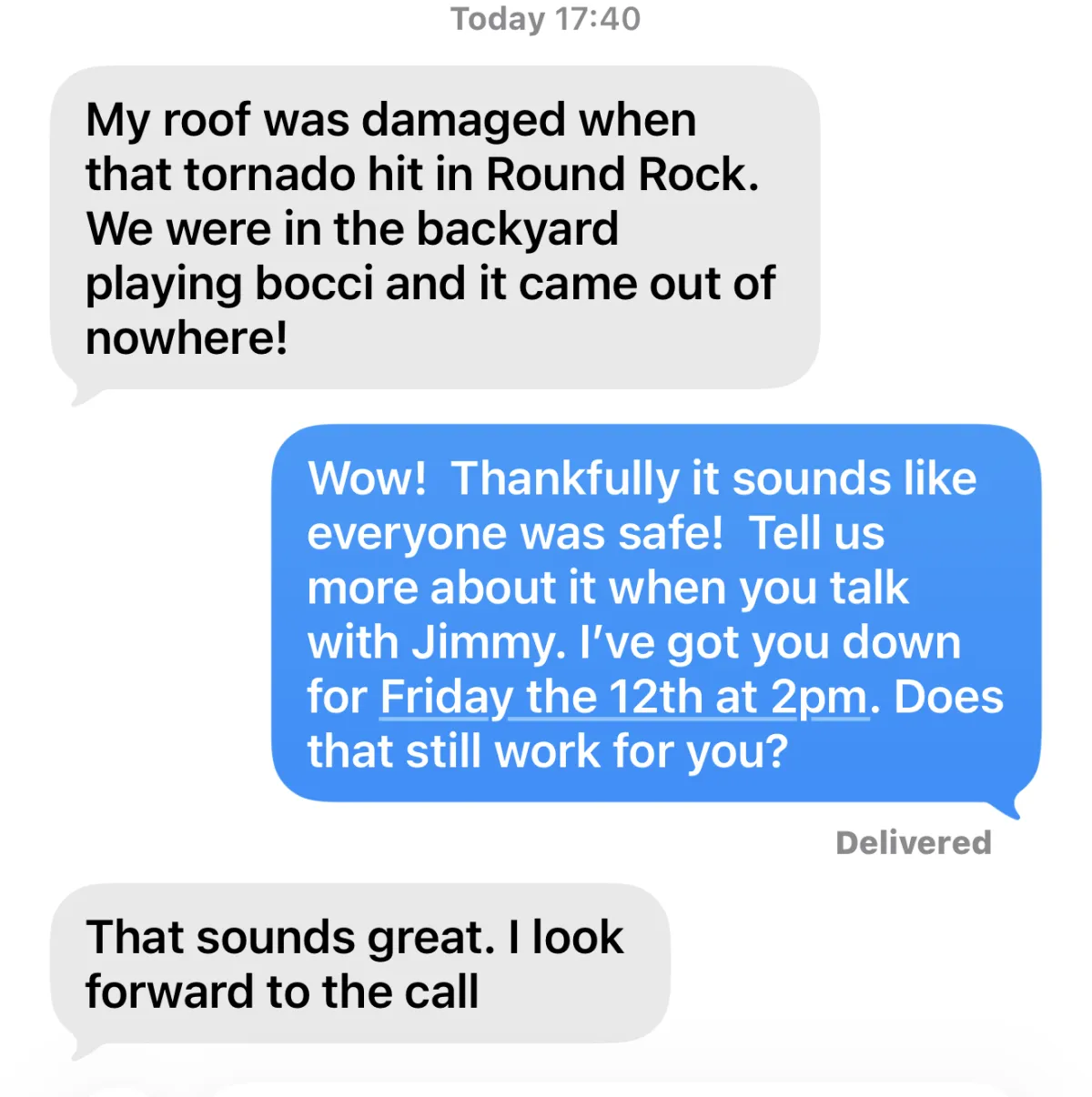 Look at this conversation. That’s not a person, that’s Roofers' Ace casually guiding a lead toward booking a qualified call.